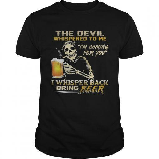 Skull the devil whispered to me Im coming for you I whisper back bring beer shirt, hoodie, sweater, longsleeve and ladies t-shirt