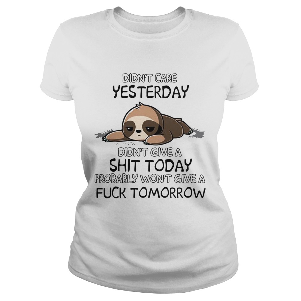 Sloth didnt care yesterday didnt give a shit today shirt, hoodie, sweater, longsleeve and ladies t-shirt