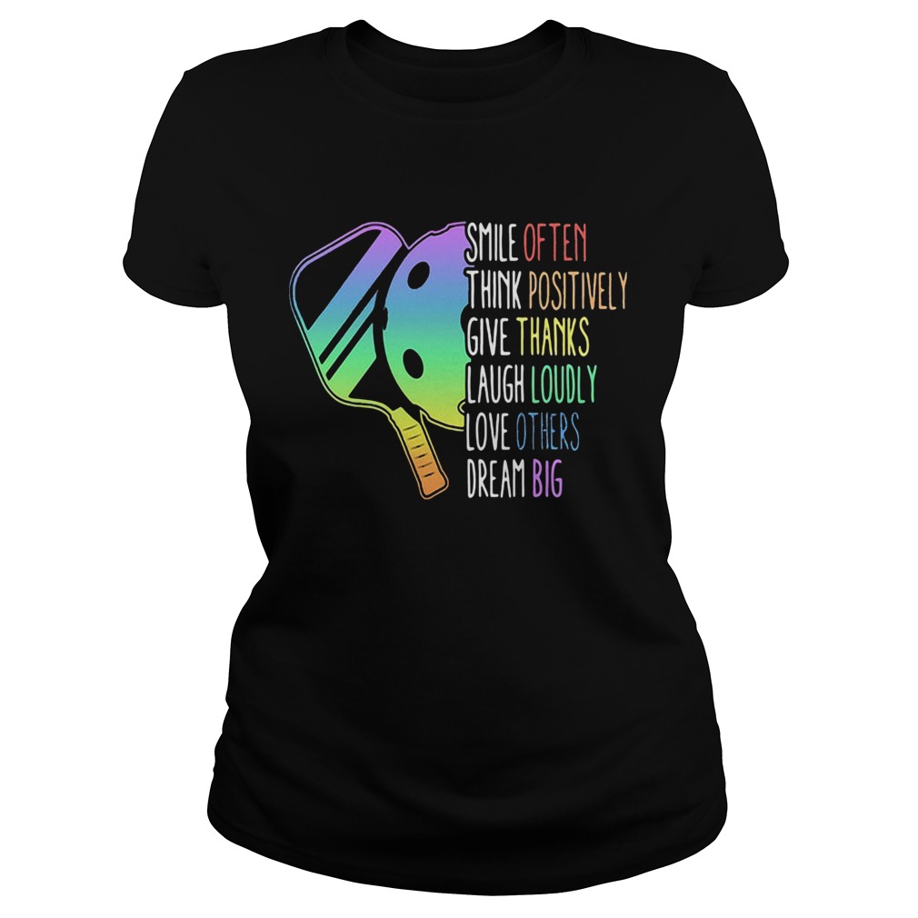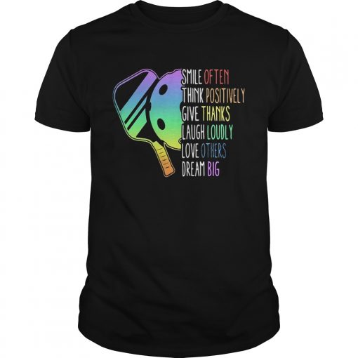 Smile Often Think Positively Give Thanks Laugh Loudly Love Others Dream Big Pickleball shirt, hoodie, sweater, longsleeve and ladies t-shirt