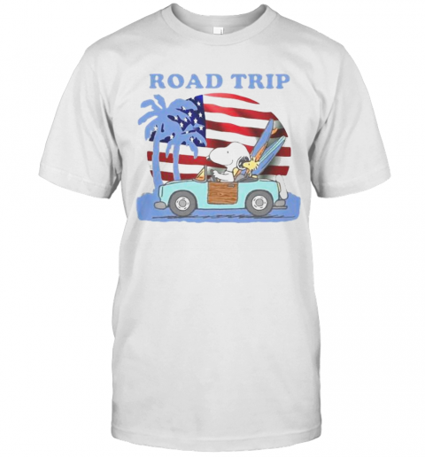 Snoopy And Woodstock Riding Car Road Trip American Flag Independence Day T-Shirt, hoodie, sweater, longsleeve and ladies t-shirt