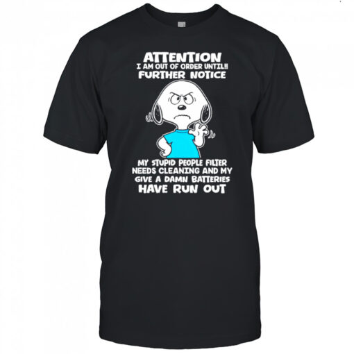 Snoopy attention i am out of order until further notice my stupid people filter needs cleaning shirt, hoodie, sweater, longsleeve and ladies t-shirt