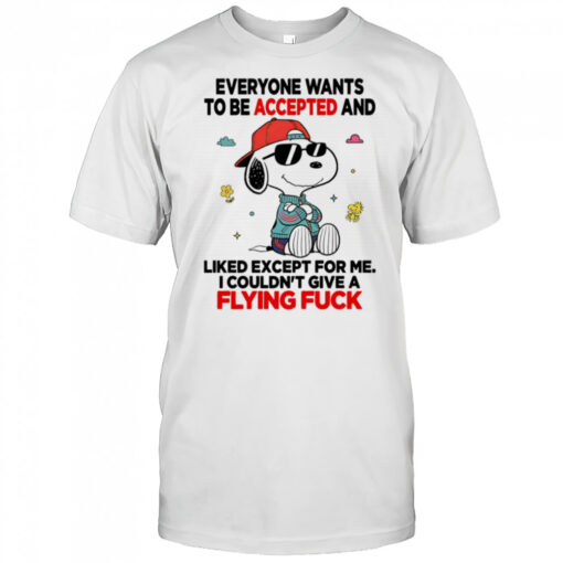 Snoopy everyone wants to be accepted and liked except for me I couldn’t give a flying fuck shirt, hoodie, sweater, longsleeve and ladies t-shirt