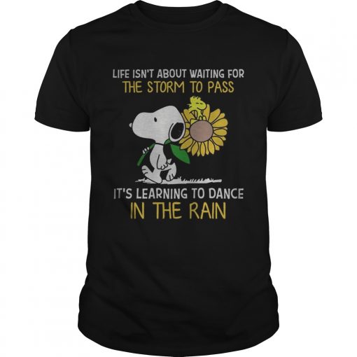 Snoopy hold Sunflower and Woodstock life isnt about waiting for the storm to pass shirt, hoodie, sweater, longsleeve and ladies t-shirt