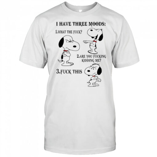 Express your inner rebel with our Snoopy I have three moods what the fuck are you fucking kidding me fuck this shirt. This daring and unapologetic design is not for the faint of heart. Featuring a bold statement that resonates with those who dare to challenge the status quo, this shirt is a symbol of defiance and individuality. The striking contrast between the iconic Snoopy character and the edgy phrase creates a powerful visual impact that is sure to turn heads wherever you go. Crafted from premium quality materials, this shirt is as comfortable as it is rebellious, making it the perfect choice for those who refuse to blend in with the crowd.