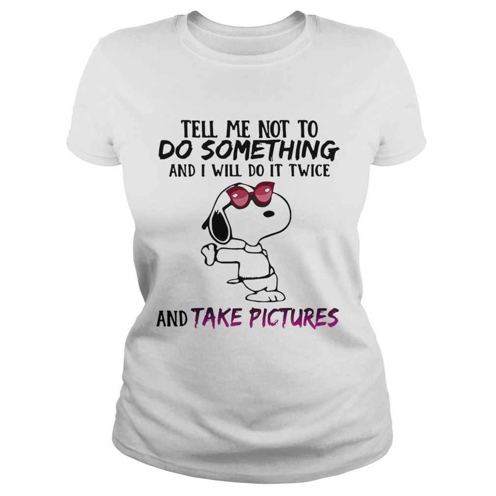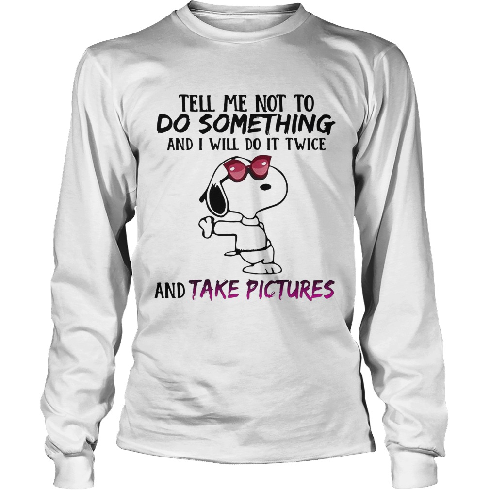 Snoopy tell me not to do something and I will do it twice and take pictures shirt, hoodie, sweater, longsleeve and ladies t-shirt