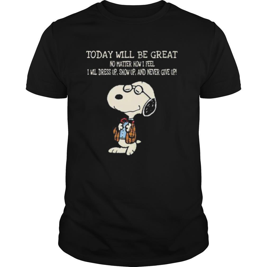 Buy Now: Snoopy today will be great no matter how i feel i will dress up show up and never give up shirt