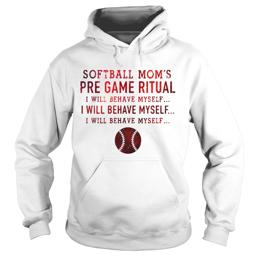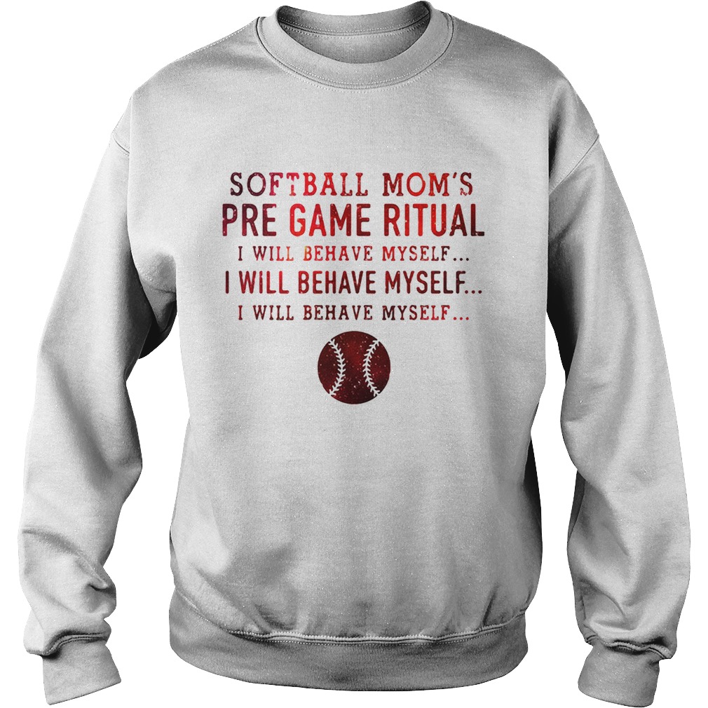 Softball mom’s pre game ritual I will behave myself shirt, hoodie, sweater and V-neck t-shirt
