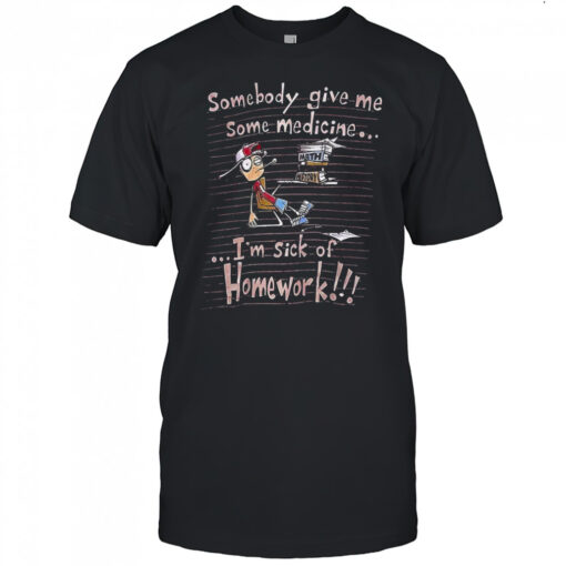 Somebody give me some medicine I’m sick of homework meme shirt, hoodie, sweater, longsleeve and ladies t-shirt
