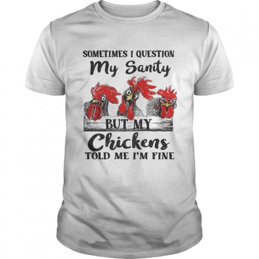 Sometimes I question my sanity but my chickens told me Im fine shirt, hoodie, sweater, longsleeve and ladies t-shirt