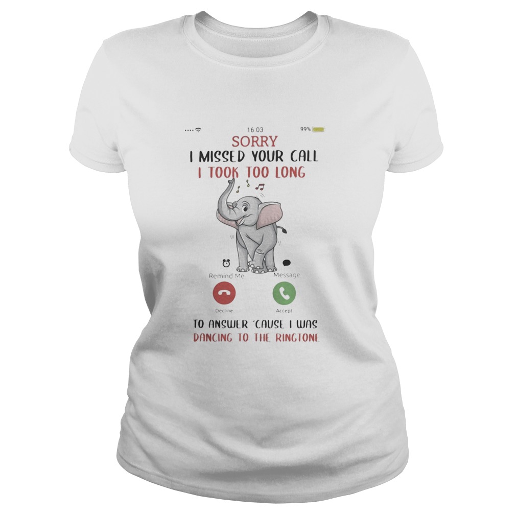 Sorry I Missed Your Call I took Too Long To Answer Cause I Was Dancing To The Ringtone Elephant shi, hoodie, sweater, longsleeve and ladies t-shirt