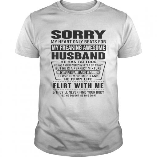 Sorry My Heart Only Beats For My Freaking Awesome Husband Flirt With Me Shirt, hoodie, sweater, longsleeve and ladies t-shirt