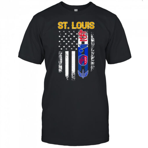 Embrace the spirit of St. Louis and showcase your support for multiple teams with our exclusive St Louis Cardinals St Louis Blues St Louis Battlehawks St Louis City SC American flag shirt. Stand out in the crowd and make a statement wherever you go. Grab yours today and join the community of passionate fans who proudly display their team allegiances and American pride. Don’t miss this opportunity to own a unique piece that symbolizes your loyalty to St. Louis sports and country. Elevate your fan gear collection and celebrate the unity of sports and patriotism with this must-have shirt!