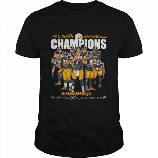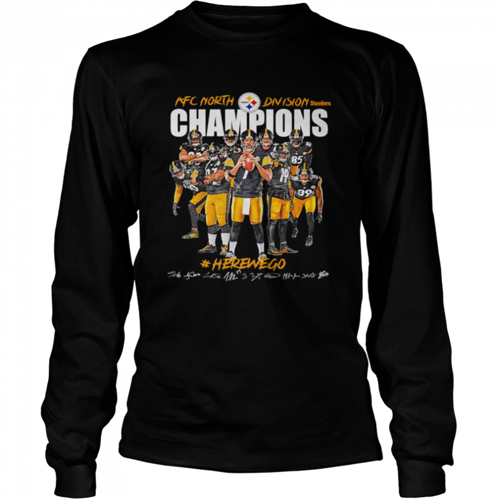 Steelers 2020 AFC North Division Champions here we go signatures shirt, hoodie, sweater, longsleeve and ladies t-shirt