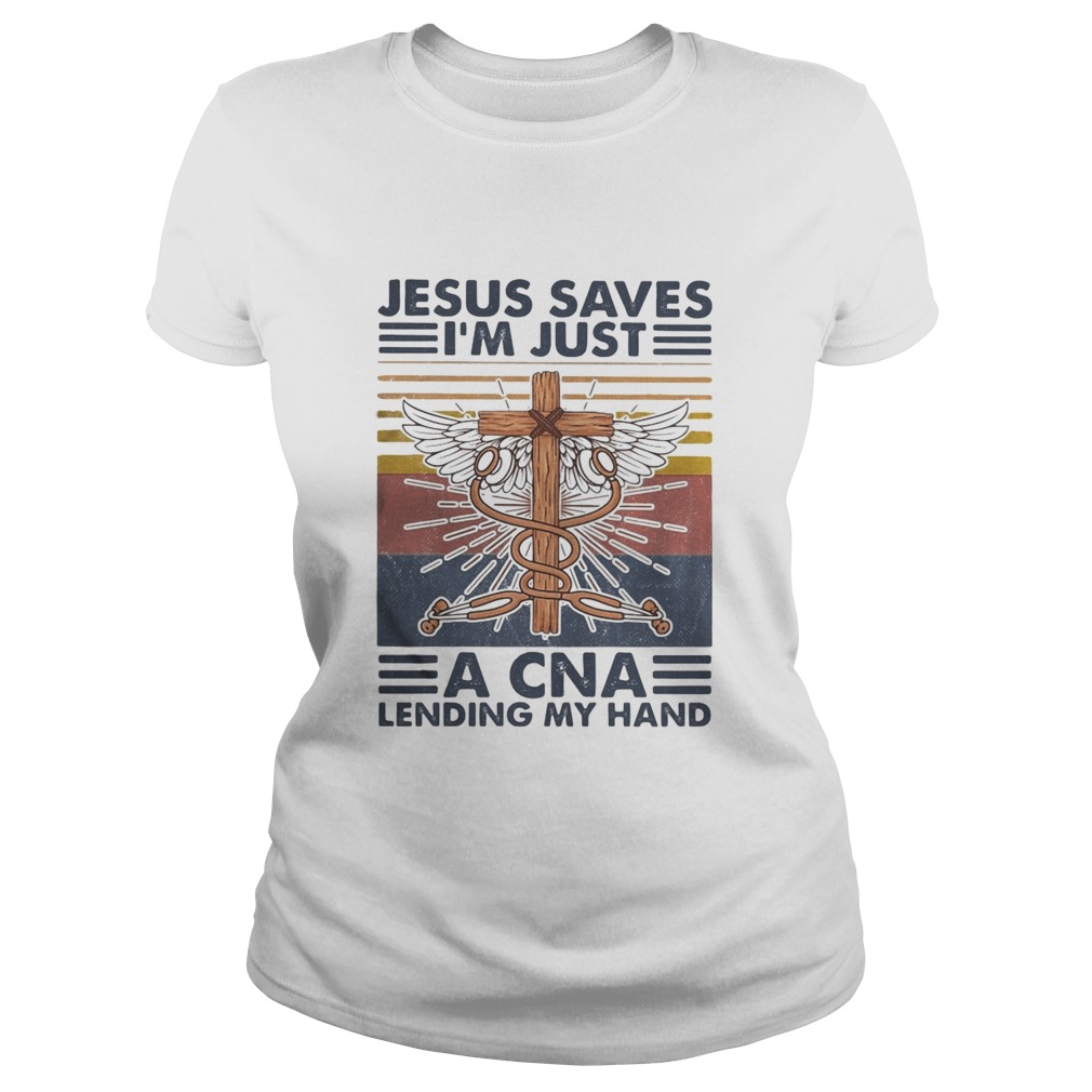 Stethoscope cross wings jesus saves Im just a CNA lending my hand vintage shirt, hoodie, sweater, longsleeve and ladies t-shirt
