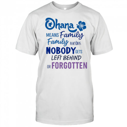 Stitch Ohana means family family means nobody gets left behind or forgotten shirt, hoodie, sweater, longsleeve and ladies t-shirt