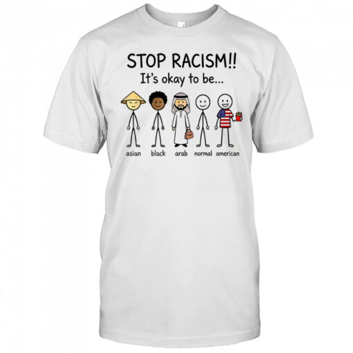 Join the movement for a more inclusive society by getting your hands on our Stop racism it’s okay to be Asian Black Arab Normal and American shirt. Wear it proudly to showcase your support for diversity and unity. Let your wardrobe speak volumes about your values and beliefs. By wearing this shirt, you are not only expressing your stance against racism but also encouraging others to do the same. Start conversations, raise awareness, and be the change you want to see in the world. Together, we can create a future where everyone feels accepted, respected, and valued. Get your shirt today and let your voice be heard through your style!