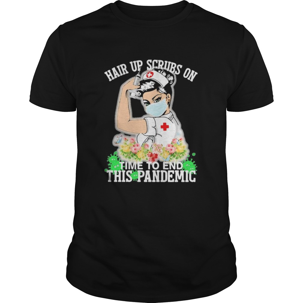Strong nurse hair up scrubs on time to end this pandemic flowers shirt, hoodie, sweater, longsleeve and ladies t-shirt