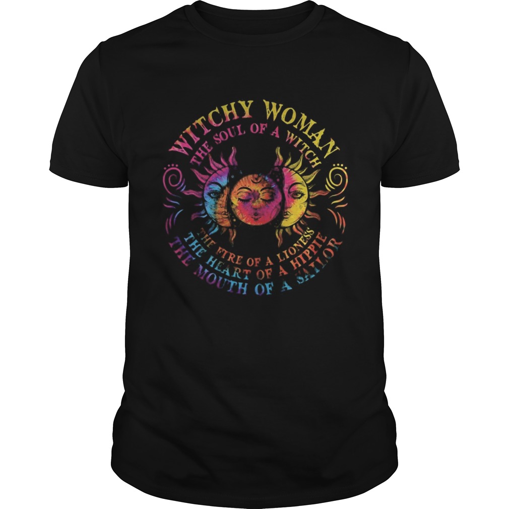 Sun witch woman the soul of a witch the fire of a lioness the heart of a hippie the mouth of a sail, hoodie, sweater, longsleeve and ladies t-shirt