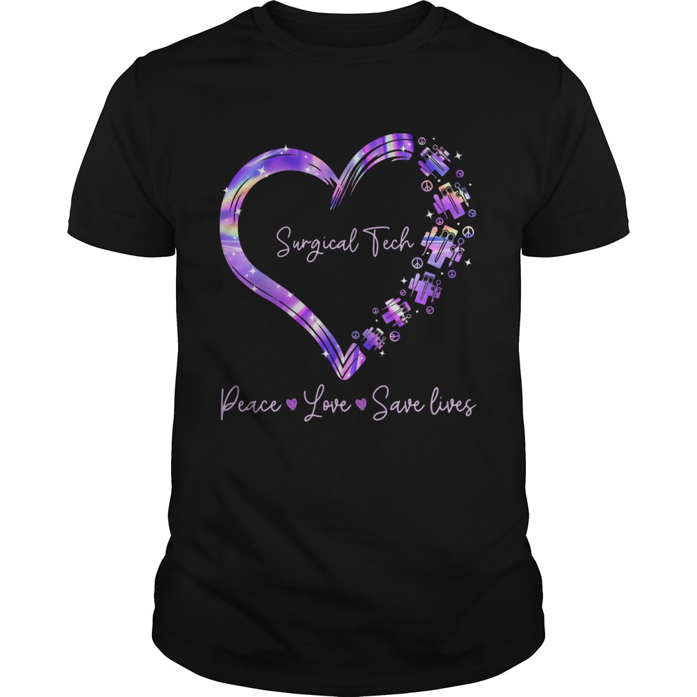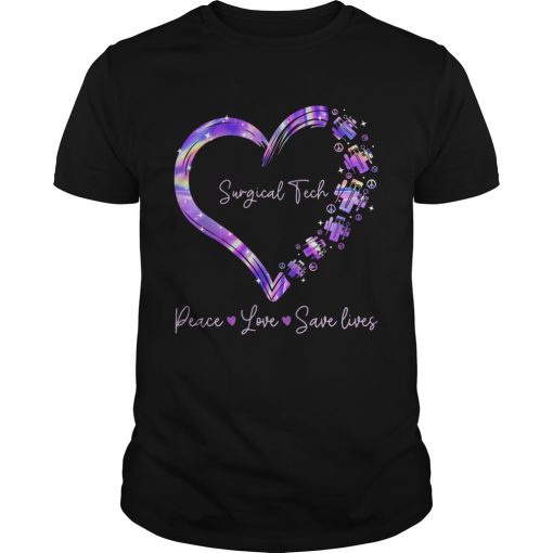 Surgical tech peace love save lives heart shirt, hoodie, sweater, longsleeve and ladies t-shirt