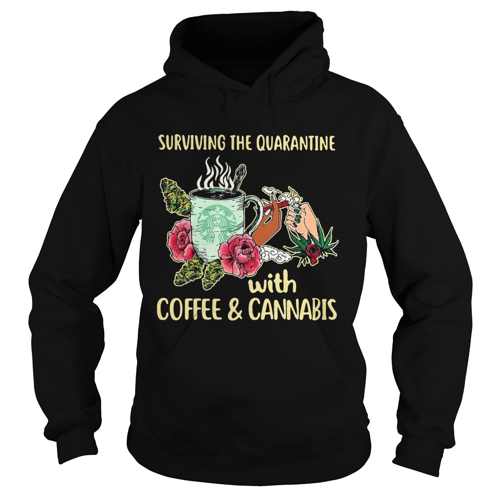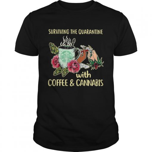 Surviving the quarantine with coffee and cannabis flower shirt, hoodie, sweater, longsleeve and ladies t-shirt