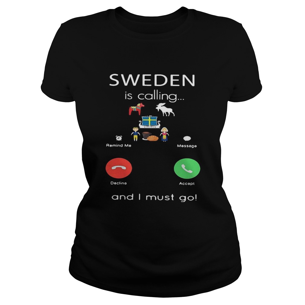 Sweden is calling and I must go shirt, hoodie, sweater, longsleeve and ladies t-shirt