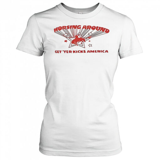 Sydney Sweeney Horsing Around get ‘yer kicks America shirt, hoodie, sweater, longsleeve and ladies t-shirt