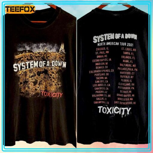 Dive into the world of rock music nostalgia with the System Of A Down Toxicity Tour SOAD T-Shirt. This iconic piece of apparel is not just a garment but a statement of rebellion and musical fervor. The design of this shirt encapsulates the raw energy and passion of the legendary Toxicity Tour by System Of A Down. The bold graphics and vibrant colors transport you back to the electrifying atmosphere of their live performances. Imagine yourself immersed in a sea of die-hard fans, chanting along to every lyric, with the band’s electrifying presence sending shivers down your spine. This shirt isn’t just an outfit; it’s a time machine that lets you relive those unforgettable moments wherever you go.