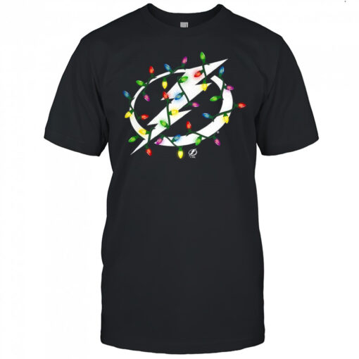 Embrace the holiday spirit with our Tampa Bay Lightning logo Holiday Merry Christmas lights shirt! Imagine cozying up by the fireplace, sipping hot cocoa, adorned in this festive shirt that perfectly blends your love for the Lightning with the joy of the season. This unique design features the iconic team logo intertwined with twinkling Christmas lights, creating a merry and bright look that will surely make you the star of any holiday gathering. Crafted from premium, soft fabric, this shirt is as comfortable as it is stylish, making it ideal for all your seasonal celebrations.