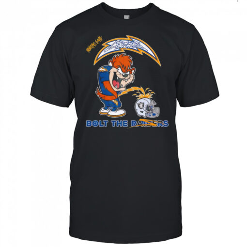 Tasmanian Devil Los Angeles Chargers Oakland Raiders helmet Bolts the Raiders shirt, hoodie, sweater, longsleeve and ladies t-shirt