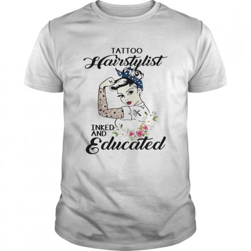 Tattoo hairstylist inked and educated flower strong woman shirt, hoodie, sweater, longsleeve and ladies t-shirt