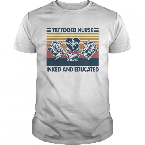 Tattooed nurse inked and educated heartbeat vintage shirt, hoodie, sweater, longsleeve and ladies t-shirt