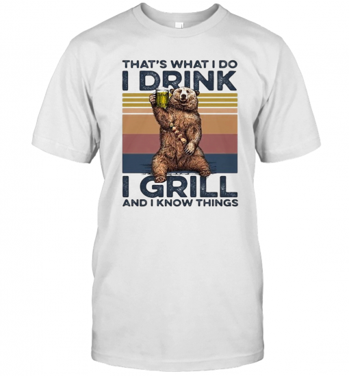 THAT’S WHAT I DO I DRINK I GRILL AND I KNOW THINGS BEAR DRINKING BEER VINTAGE RETRO T-Shirt, hoodie, sweater, longsleeve and ladies t-shirt