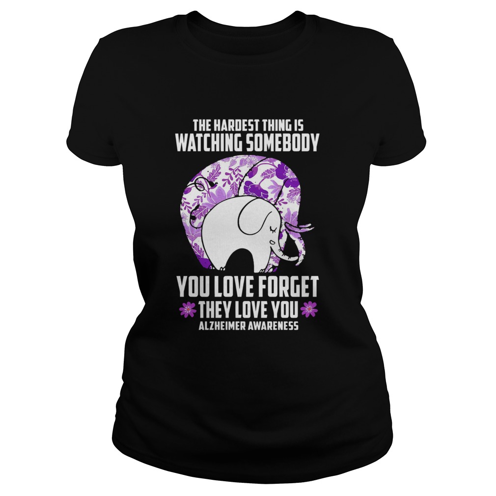 The Hardest Thing IS Watching Some Body You Love Forget They Love You Alzheimers Awareness Elephan, hoodie, sweater, longsleeve and ladies t-shirt