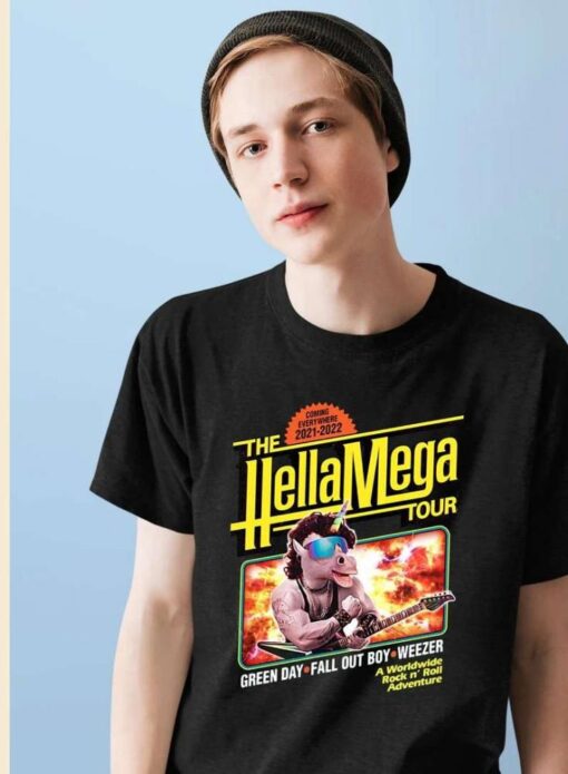Immerse yourself in the electric atmosphere of the Hella Mega World Tour 2021 with the The Hella Mega World Tour 2021 Green Day T-Shirt Fall out Boys. Crafted from premium quality materials, this t-shirt offers not just style but also comfort and durability. The vibrant colors and intricate details of the design are sure to make you stand out in any crowd. Be ready to unleash your inner rockstar and make a bold fashion statement wherever you go. Don’t miss your chance to own a piece of rock history – grab your The Hella Mega World Tour 2021 Green Day T-Shirt Fall out Boys today and rock on in style!