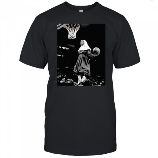 But wait, there’s more! Beyond its amusing design, **The nun dunking basketball shirt** boasts a comfortable fit that flatters all body types. Whether you’re shooting hoops with friends or simply hanging out, this shirt exudes confidence and a hint of rebellion. Embrace your playful side and showcase your unique personality with this one-of-a-kind piece. So why blend in when you can stand out with a dash of humor and style? Elevate your casual wear collection with **The nun dunking basketball shirt** and let your outfit do the talking. Don’t miss out on the opportunity to add a touch of fun to your wardrobe – grab yours today and make a bold fashion statement wherever you go!
