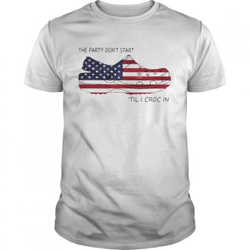 The Party Dont Start Til I Croc In American Flag shirt, hoodie, sweater, longsleeve and ladies t-shirt