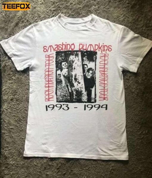 The Smashing Pumpkins 1993-1994 Tour Short-Sleeve T-Shirt is a nostalgic piece of music memorabilia that encapsulates the raw energy and grunge aesthetic of the iconic era. This vintage-inspired shirt features a striking graphic print on the front, showcasing the band’s name in bold, retro typography against a faded tour poster backdrop. The distressed finish gives it a worn-in look, as if it has been through countless mosh pits and rock concerts. Made from soft, breathable cotton, this tee is perfect for casual everyday wear or to make a statement at your next music event. Whether you’re a die-hard fan of The Smashing Pumpkins or simply appreciate the rebellious spirit of ’90s alternative rock, this shirt is a must-have addition to your collection.
