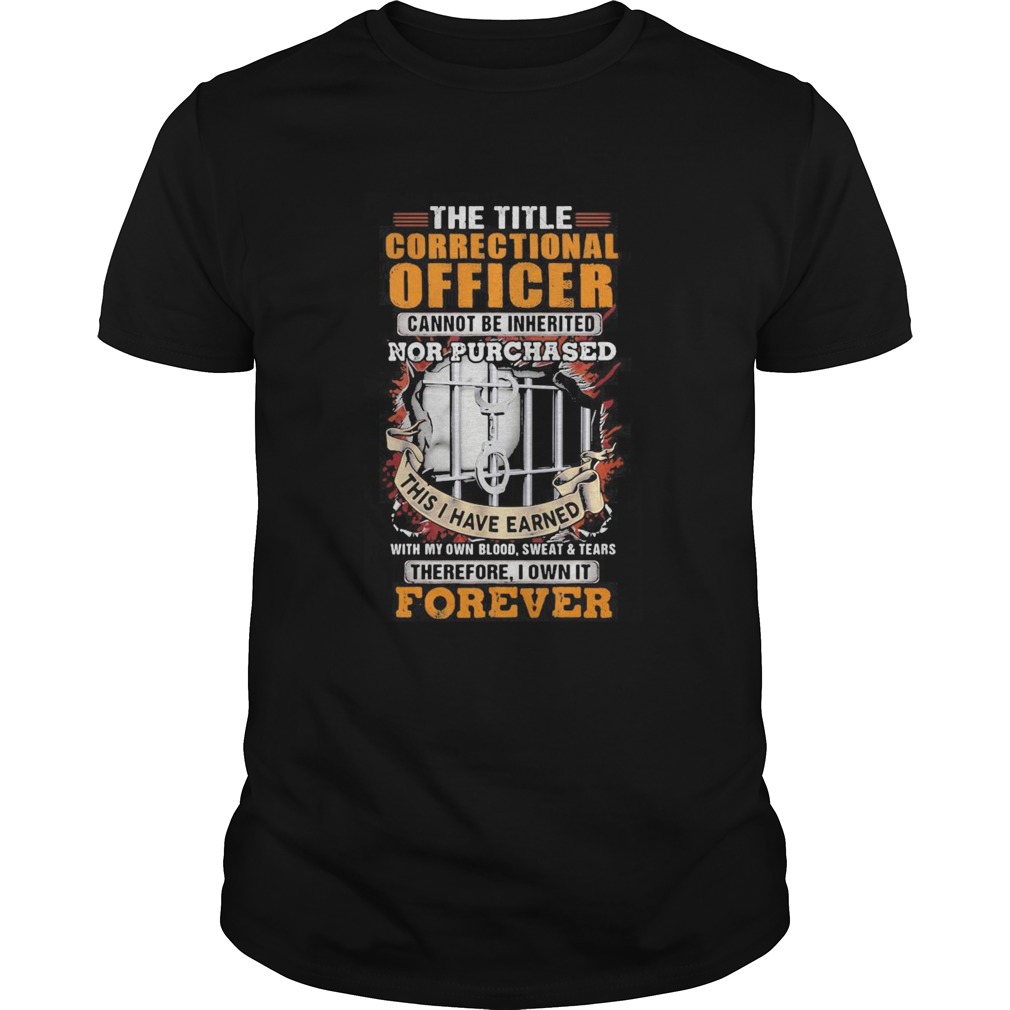 The title correctional officer cannot be inherited nor purchased this I have earned therefore I own, hoodie, sweater, longsleeve and ladies t-shirt