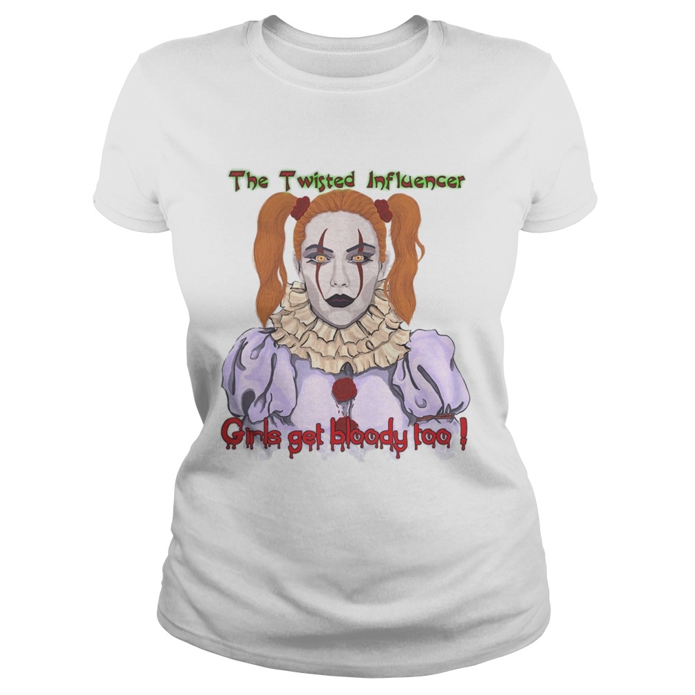 The Twisted Influencer Girls get bloody too Scary Clown shirt, hoodie, sweater, longsleeve and ladies t-shirt