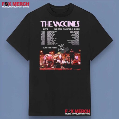 But this shirt is more than just a piece of clothing; it’s a ticket to relive the magic of The Vaccines’ iconic 2025 North American tour. Every time you wear The Vaccines North American Tour 2025 Shirt, you’re not just wearing fabric; you’re wearing memories of nights filled with music, unity, and pure joy. The soft, breathable material ensures comfort as you move to the beat of your favorite tunes, making it ideal for long hours of dancing or simply lounging with friends. So why settle for ordinary when you can embrace the extraordinary? Step into the world of The Vaccines with this shirt, and let the music speak through your style. Don’t miss out on the chance to own a piece of rock history – grab your shirt now and make a bold statement wherever you go!