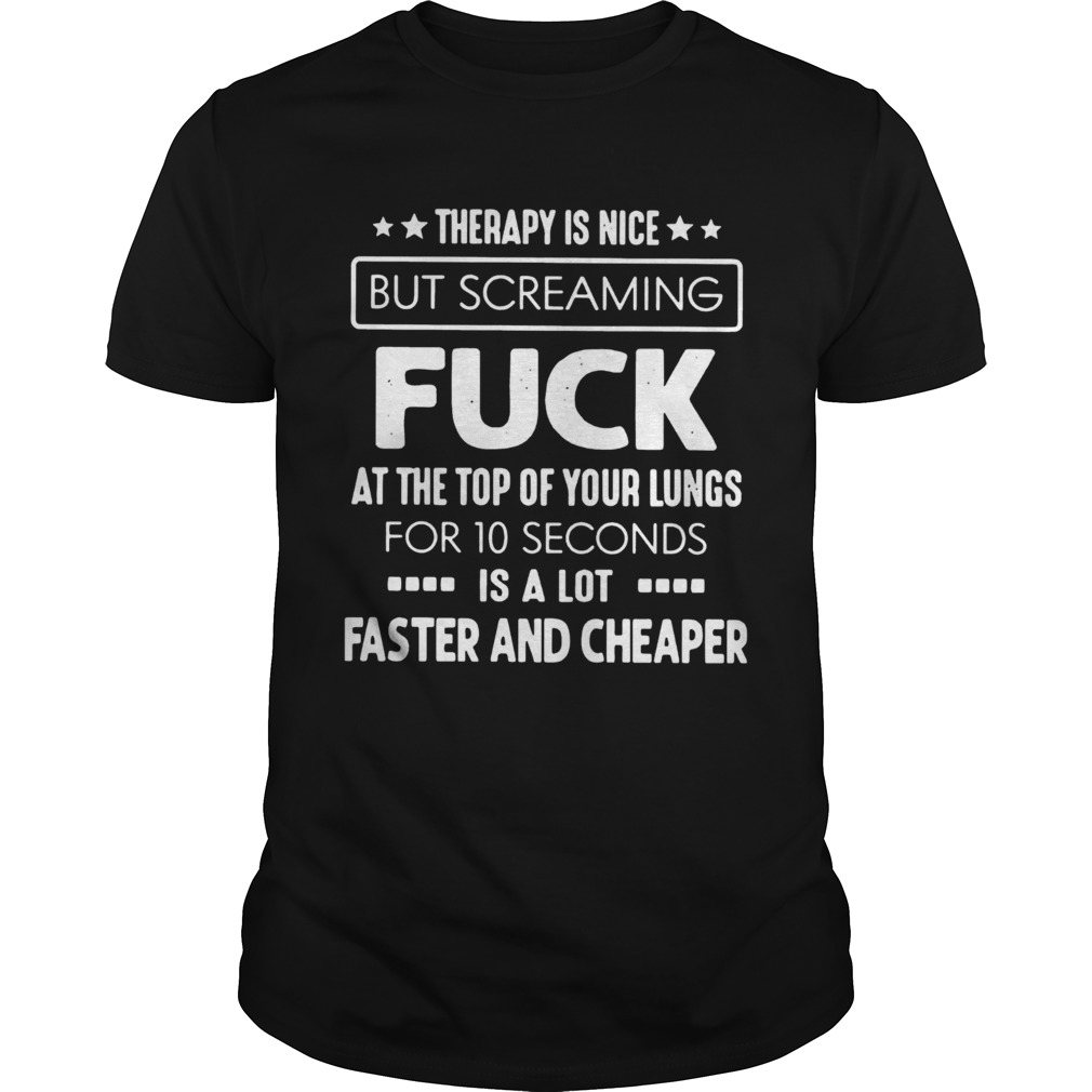 Therapy Is Nice But Screaming Fuck At The Top Of Your Lungs For 10 Seconds Is A Lot Faster And Chea, hoodie, sweater, longsleeve and ladies t-shirt