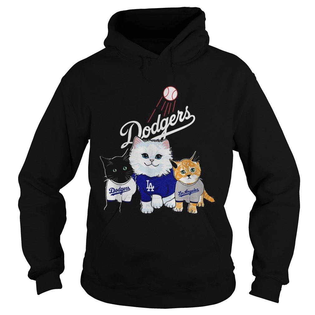 Three cat black white and yellow Los Angeles Dodgers shirt, hoodie, sweater, longsleeve and ladies t-shirt