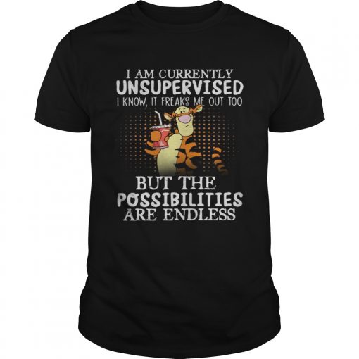 Tiger I am currently unsupervised I know it Freaks Me out too but the possibilities are endless shirt, hoodie, tank top and sweater