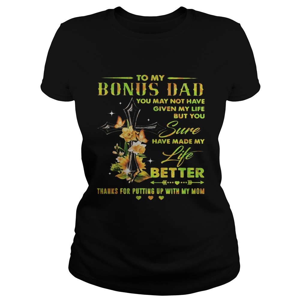 To my bonus dad you may not have given my life but you sure have made my life better thanks for put, hoodie, sweater, longsleeve and ladies t-shirt