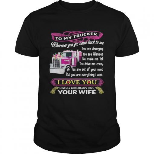 To my trucker wherever you go come back to me i love you forever and always love your wife shirt, hoodie, sweater, longsleeve and ladies t-shirt
