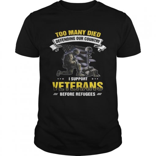 Too many died defending our country I support veterans before refugees shirt, hoodie, sweater and V-neck t-shirt