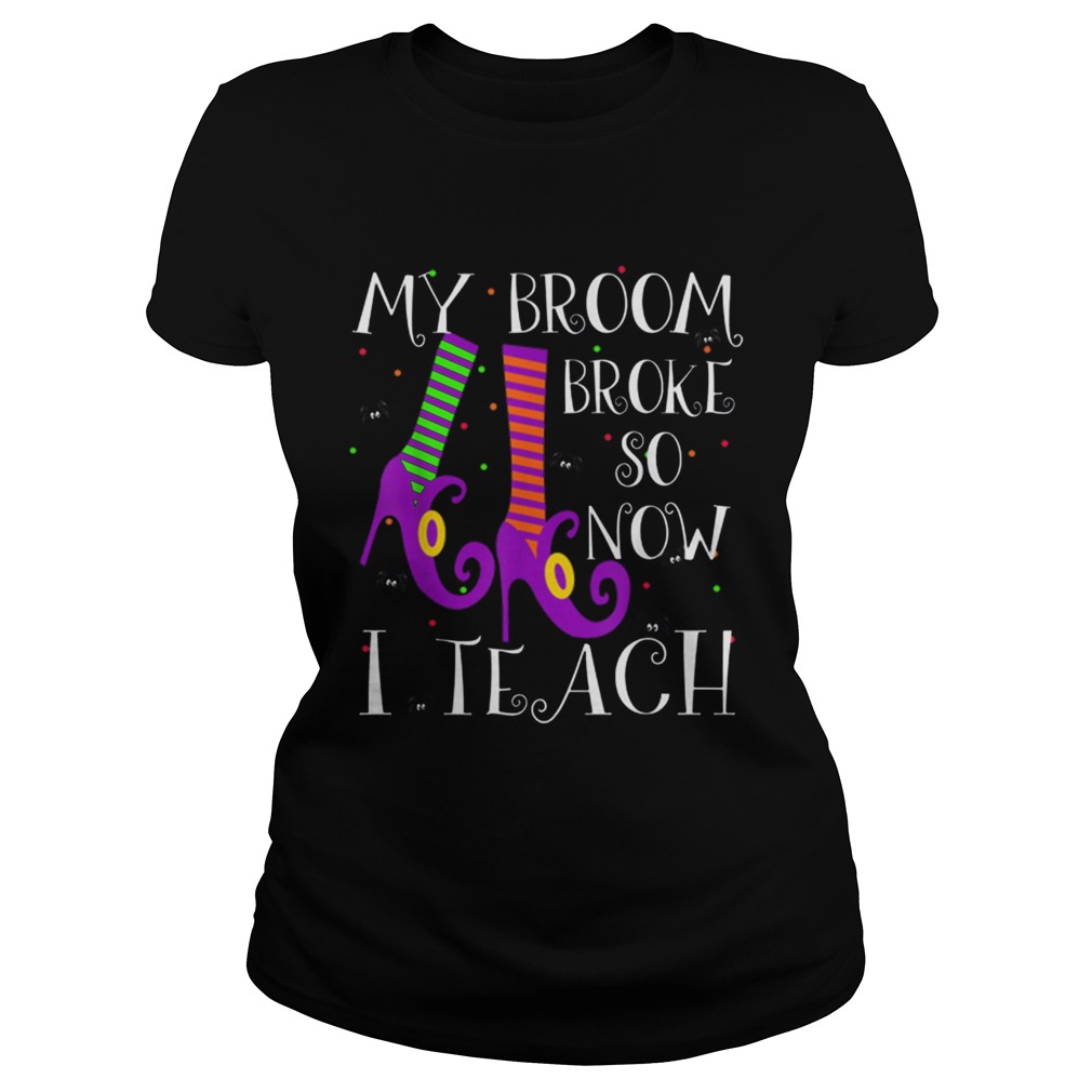 Top My Broom Broke So Now I Teach Halloween Witch Teacher shirt, hoodie, sweater, longsleeve and ladies t-shirt