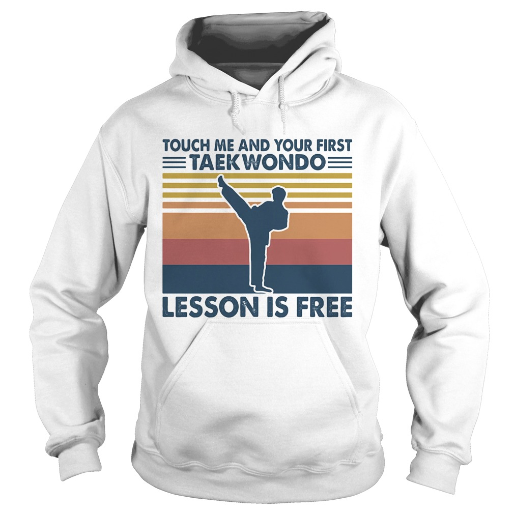 touch me and your first taekwondo lesson is free vintage shirt, hoodie, sweater, longsleeve and ladies t-shirt
