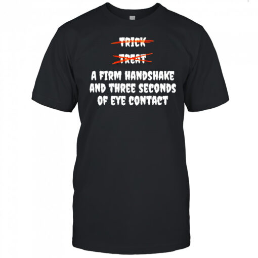 Trick or Treat a firm handshake and three seconds of eye contact Halloween shirt, hoodie, sweater, longsleeve and ladies t-shirt