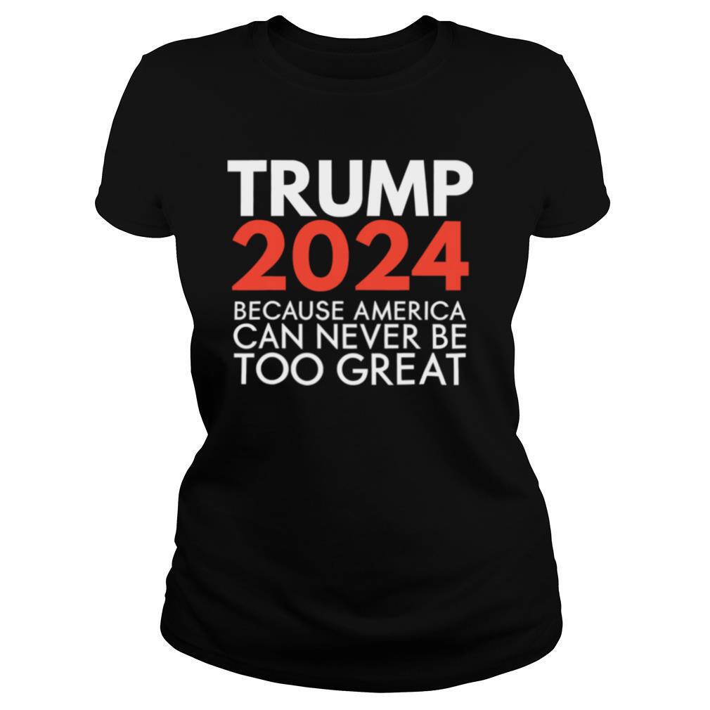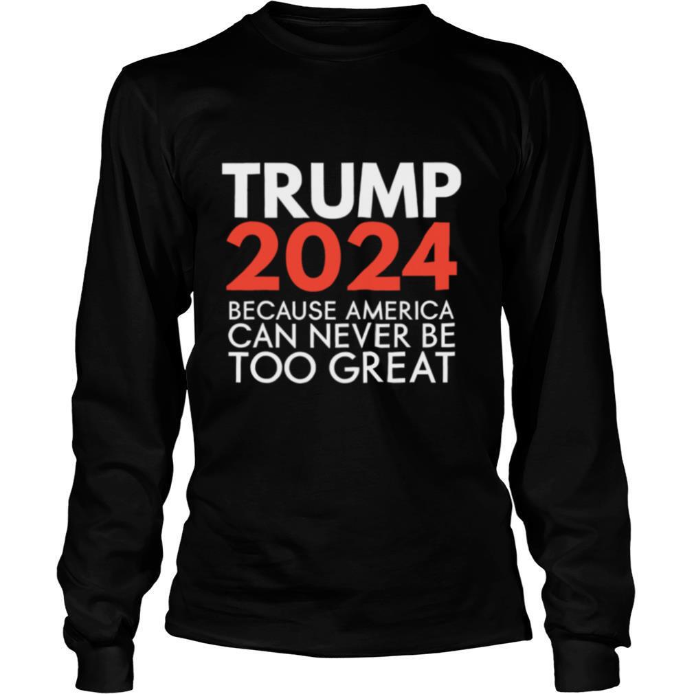 Trump 2024 Because America Can Never Be Too Great Election shirt, hoodie, sweater, longsleeve and ladies t-shirt